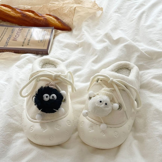 Cartoon Bow Fleece-Lined Platform Mules