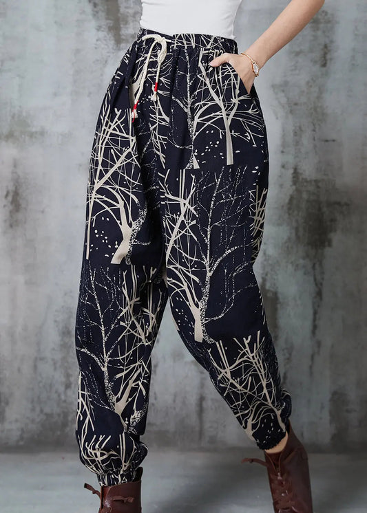Lässige schwarze Haremshose aus Baumwolle mit übergroßem Aufdruck, Frühling JK1044