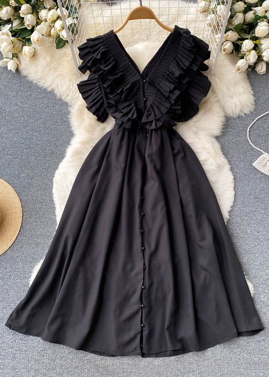 Elegantes rotes Rüschenkleid mit Knopfleiste aus fester Baumwolle für den Sommer TR037