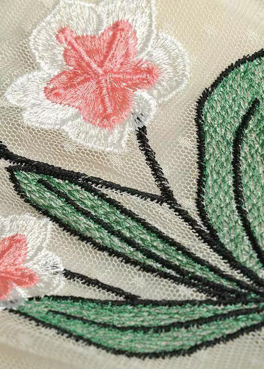 Feines Apricot-Kleid aus besticktem Patchwork-Tüll mit quadratischem Kragen und langen Ärmeln XX074