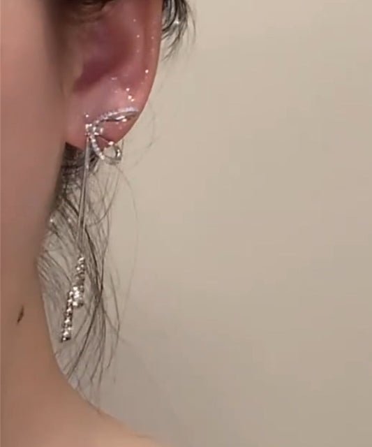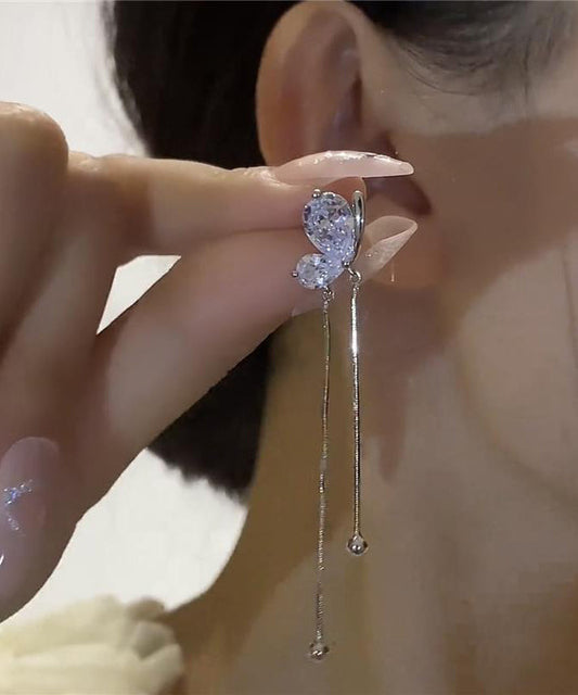 Beautiful Zircon Earrings Drop Butterfly Tassel Silk Copper