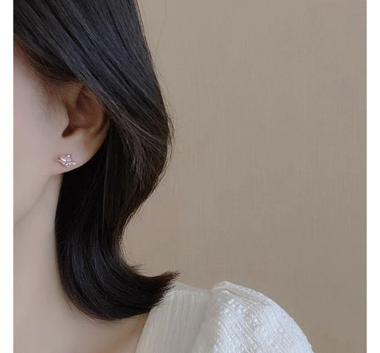 Stud Earring Heart Planet Rhinestone Sterling Silver