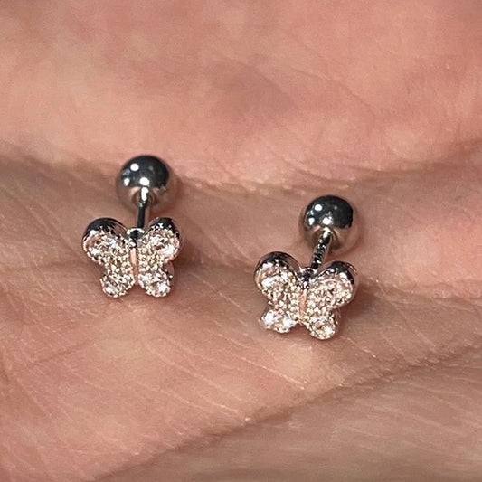 Sterling Barbell Butterfly Silver Earring Rhinestone