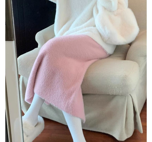 High Rise Plain Slit Midi Straight Knit Skirt