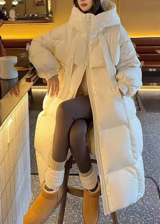 Loose Black Pockets Patchwork Zippered Hooded Maxi Parka Winter RD012