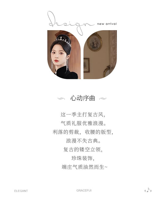 Puff-Sleeve Stand Collar Faux Pearl Trim Keyhole A-Line Evening Gown