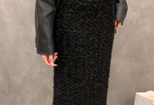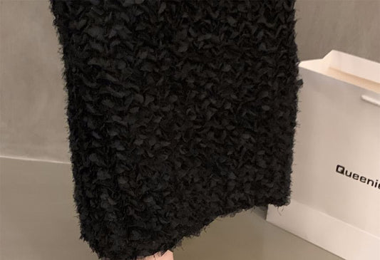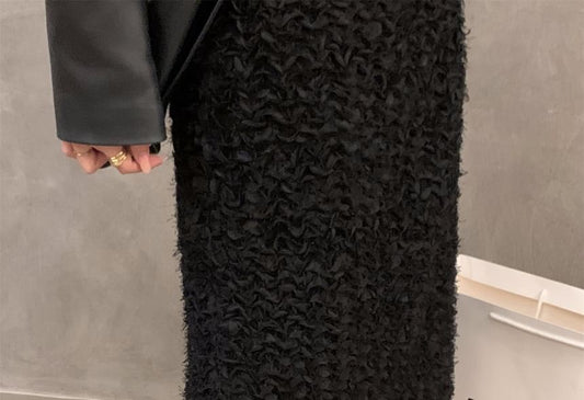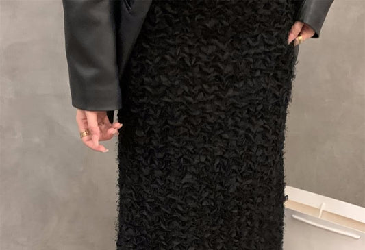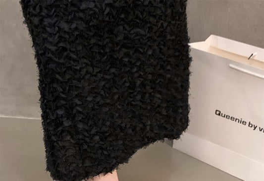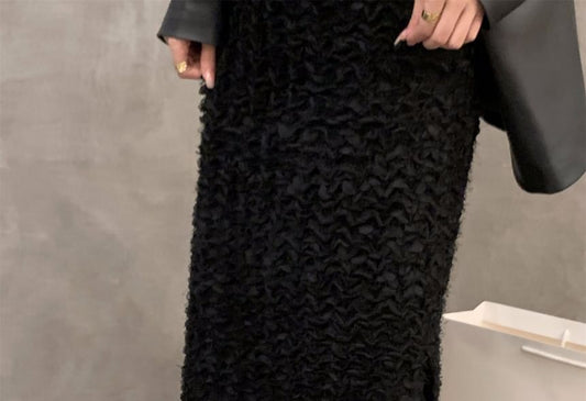 Set : Crewneck Plain Cropped Top + High-Waist Plain Skirt
