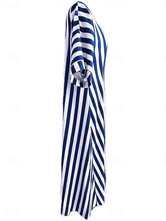 Women's Midi Dress V Neck Long Sleeve Kaftan Lightweight