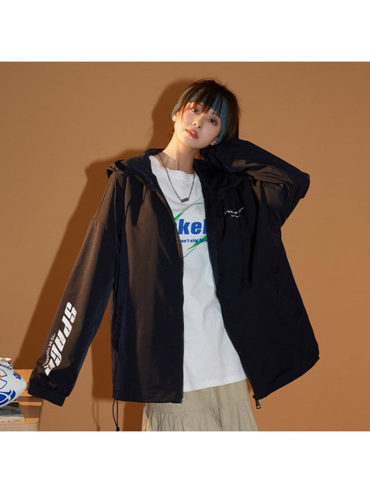 Lässige Stickerei Kapuzen Reißverschluss Herren Mäntel ZN21