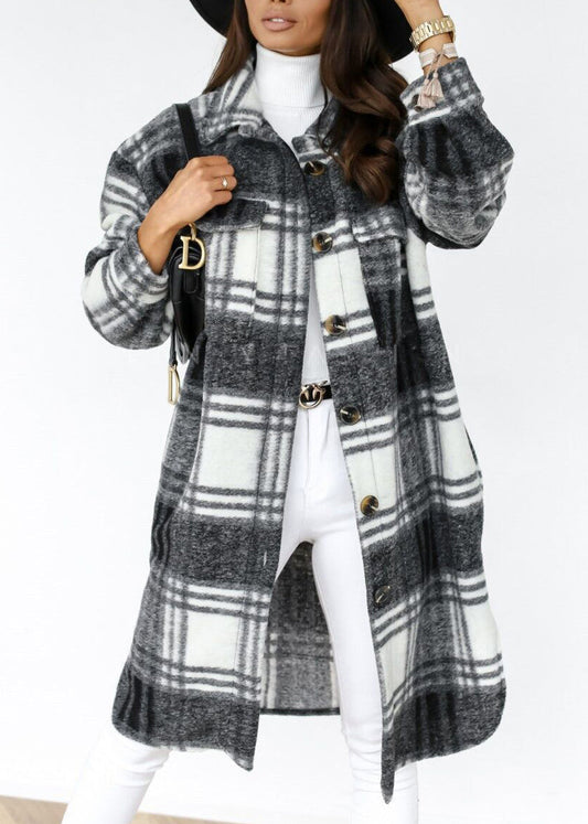 Spring Coat Woolen Peter Collar Casual Black Plaid Pan Shirts
