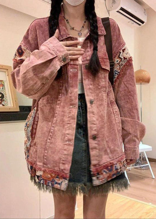 Patchwork Button Spring Peter Pink Coat Vintage Pan Collar Denim