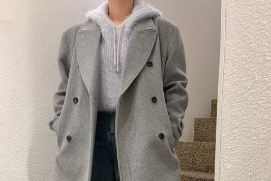 Loose White Button Pockets Patchwork Woolen Men Trench Coat Winter RO042