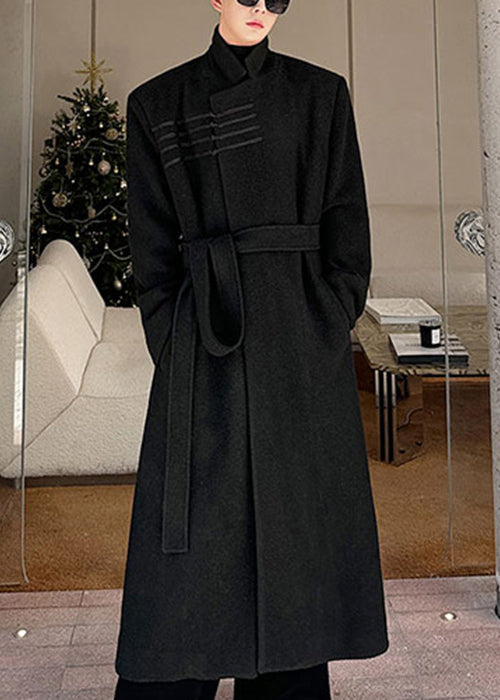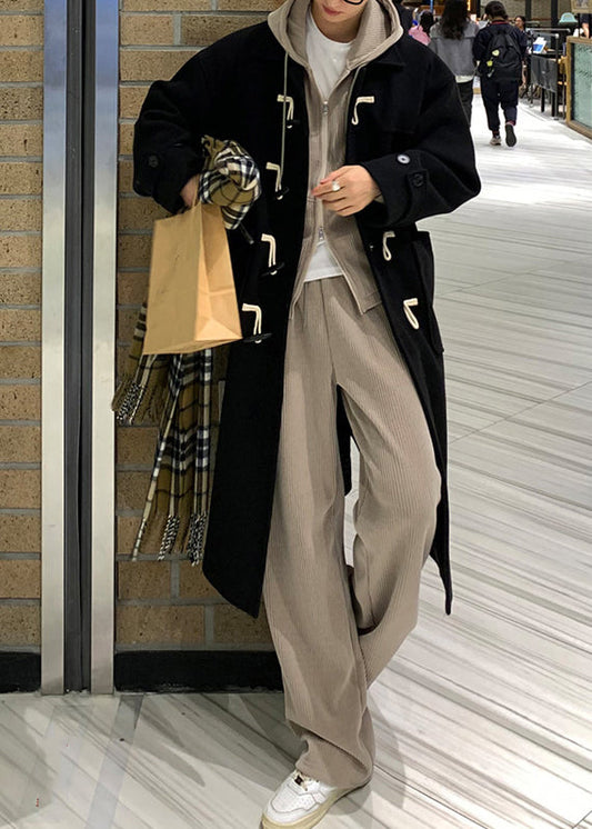 Chic Black Button Pockets Patchwork Woolen Mens Trench Coats Winter RO051