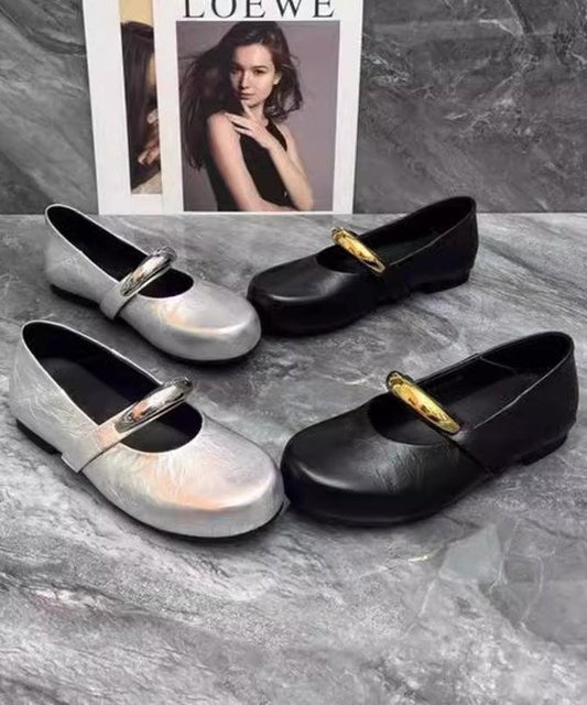 Beautiful Black Faux Splicing Flat Shoes Leather Comfy