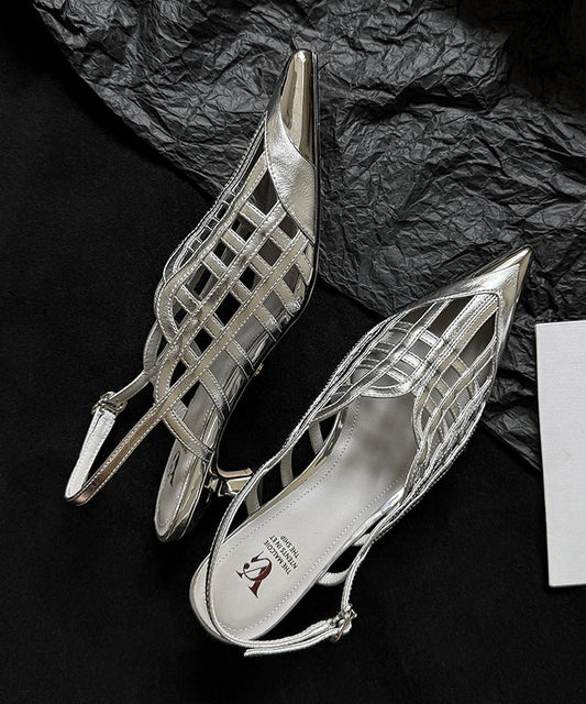 Splicing Hollow Classy Heel Sandals Beige Out High
