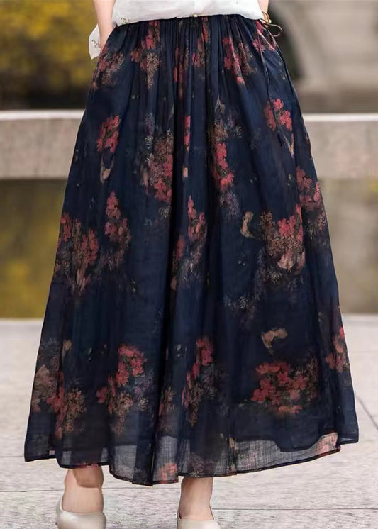 Lockere grüne Leinenröcke mit elastischer Taille und Print für den Sommer LK030