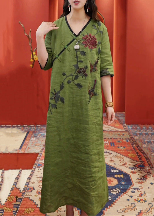Retro Grün Druck Knopf Maxi Kleider Sommer VV023