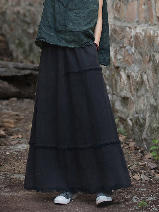 Damen Sommer Retro Solide Raw-edge Ramie Rock CC046