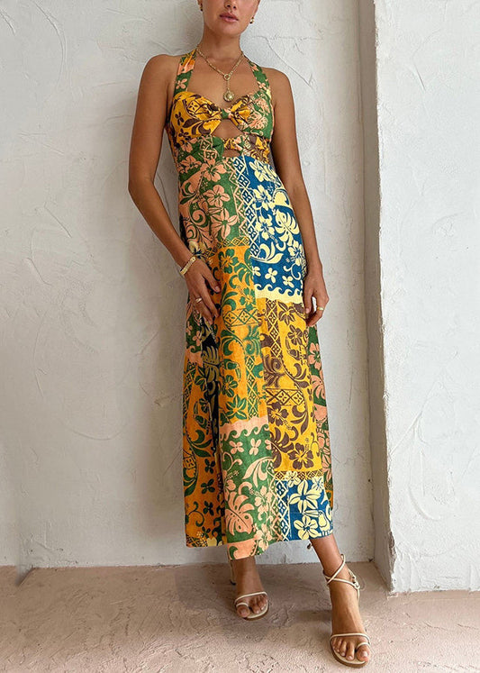 Sexy Leinen-Ferienkleid mit Farbblock-Print und Schnürung, ärmellos FF079