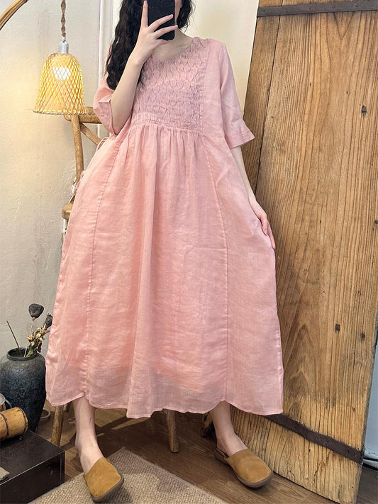 Damen Sommer Artsy Rhomboids Solid Ramie Kleid CV1019
