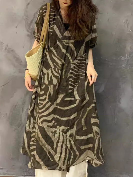 Damen Sommer Casual Print Ramie Trägerkleid UI1004