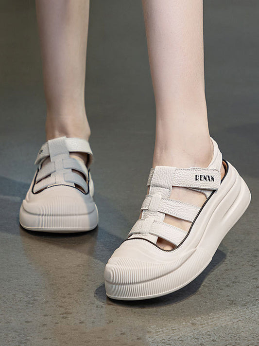 Damen Sommer Leder Gespleißt Solide Plateau Sandalen UI1026