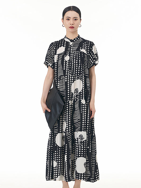 Damen Sommerkleid mit unregelmäßigem Druck und Punkten QW1005