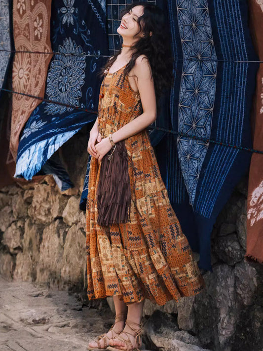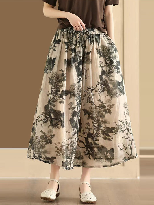 Frauen Vintage Sommer Blume Ramie Lose Rock QW1006