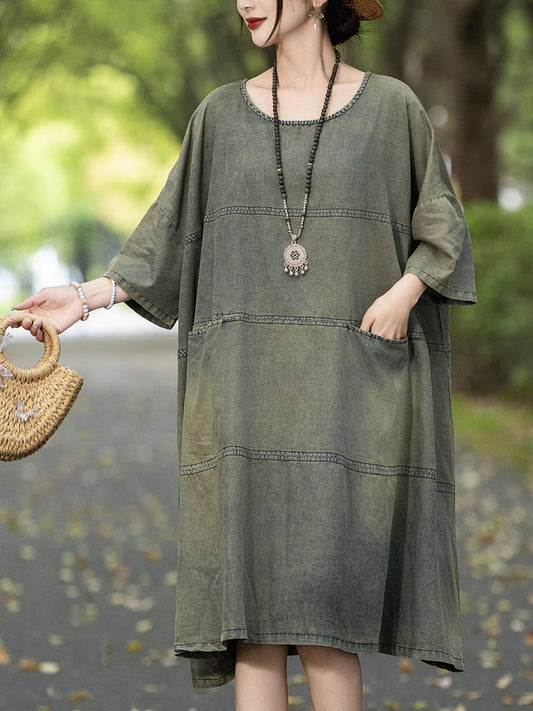 Damen Sommer Retro Gespleißtes Denim Minikleid QW1035