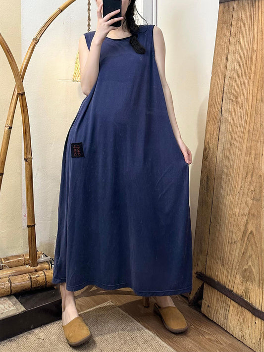 Damen Sommer Casual Solid Patch Gespleißt Weste Kleid QW1021