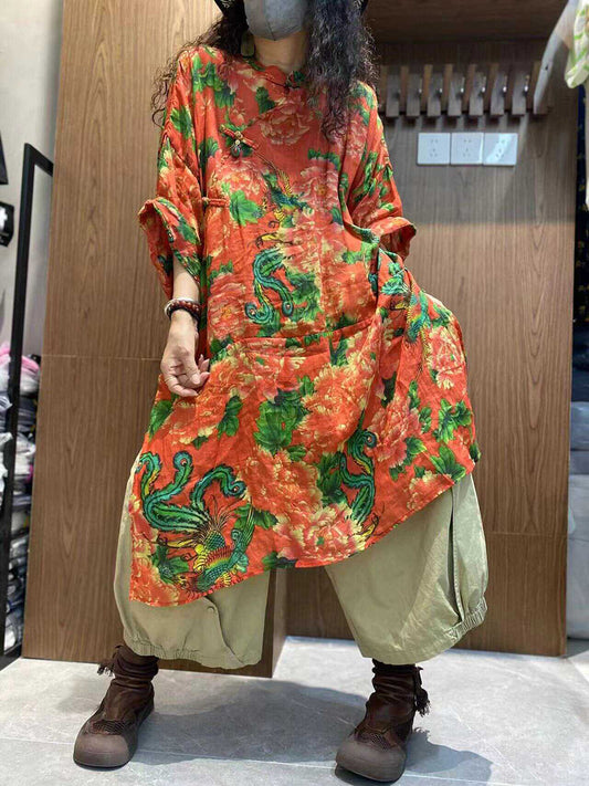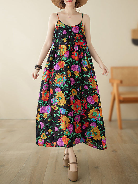 Damen Sommer Artsy Floral Ramie Lockeres Kleid CO1038