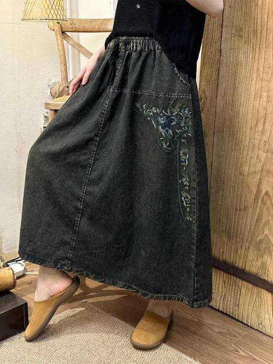 Damen Artsy Jeansrock mit Blumenstickerei PA1009