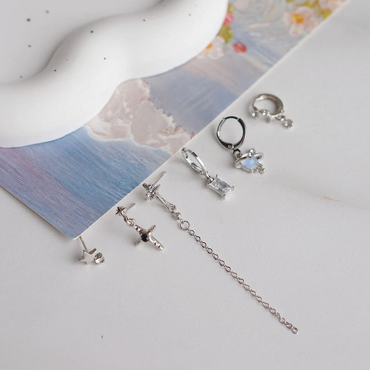 Rhinestone 6: + Silver 925 Set Earring Drop of Huggie Dangle Sterling