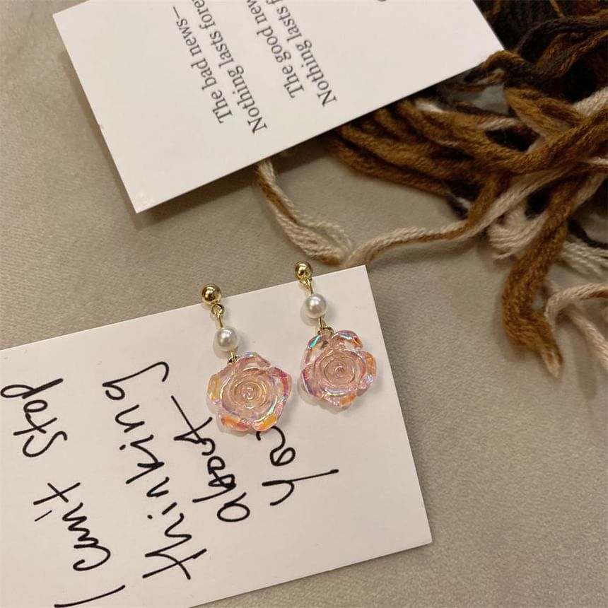 Alloy Earring Floral Pearl Dangle Faux
