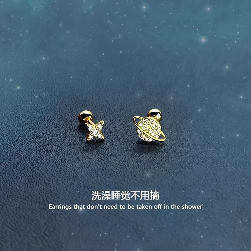 Asymmetrical Star Sterling Silver Earring Barbell Rhinestone