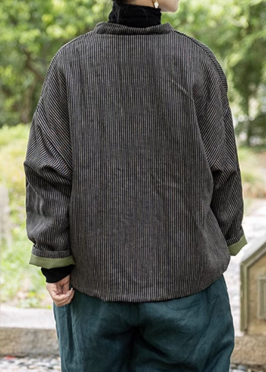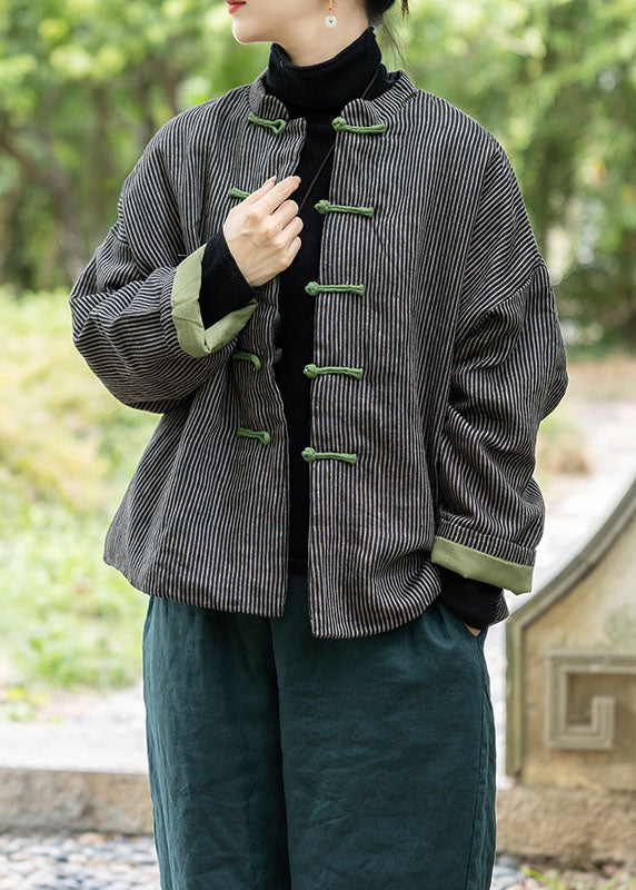Black Fine Cotton Filled Coat Stand Collar Chinese Button Spring TJ004