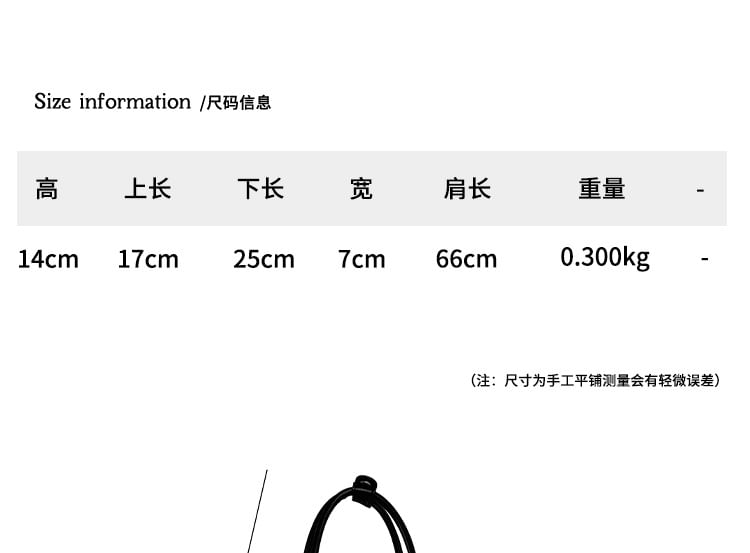 | Upper Width | Bottom Width | Height | Thickness | Strap Length |