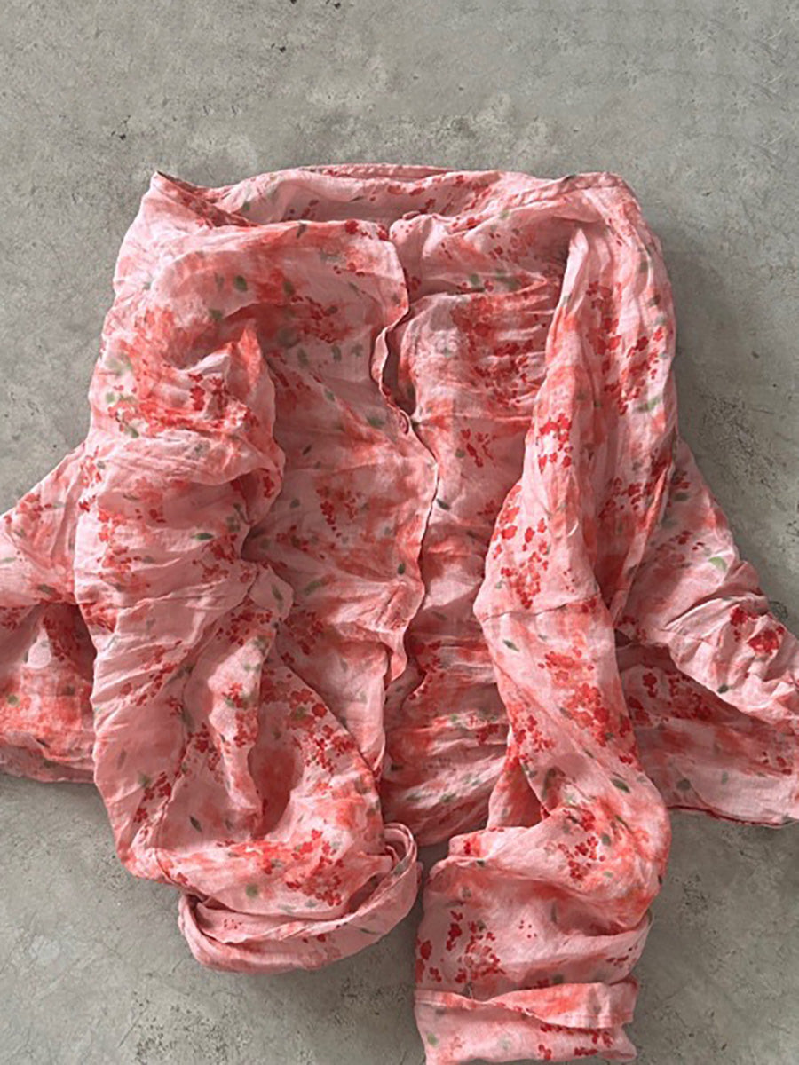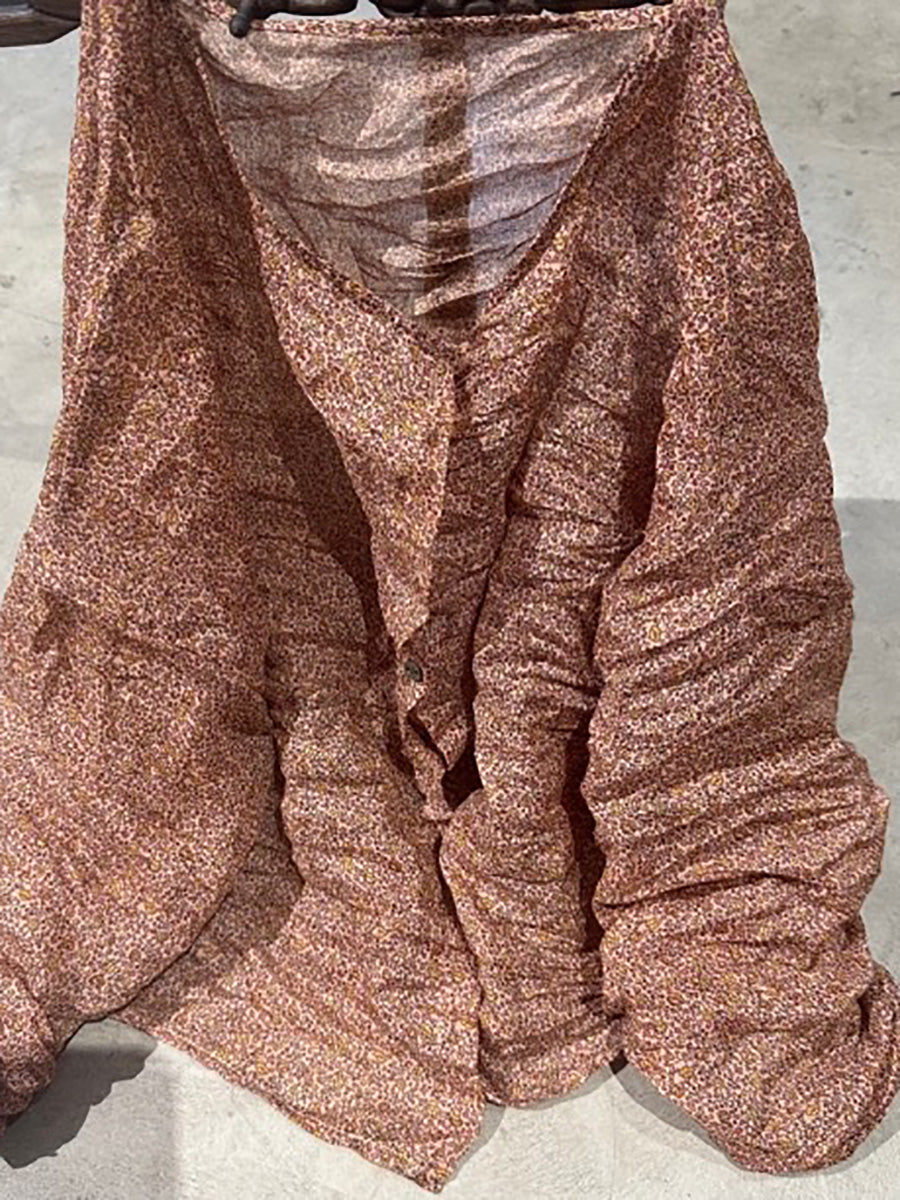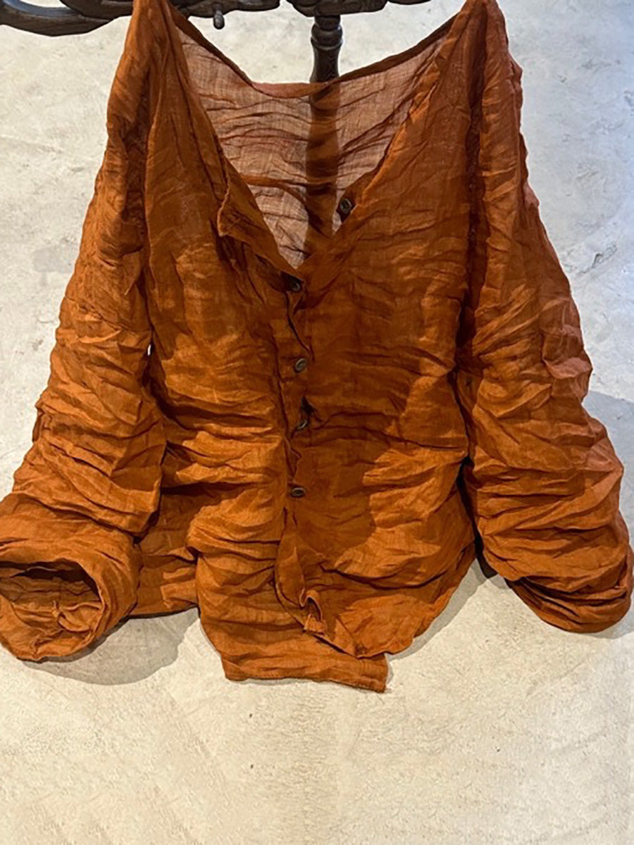 This shirt is crafted from pure ramie for a vintage. autumnal look. The O-neck collar and full raglan sleeves add a touch of retro style to the solid-colored or floral pattern options. Perfectly suited for the spring and autumn seasons.