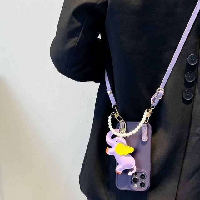 Faux Leather Elephant Charm Faux Pearl Strap Phone Case