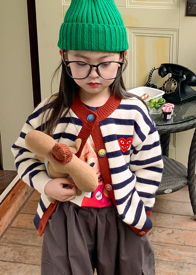 Casual Green O-Neck Striped Button Cotton Knit Kids Cardigan Winter WL035