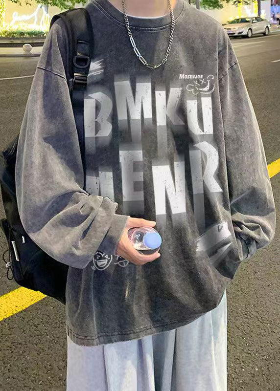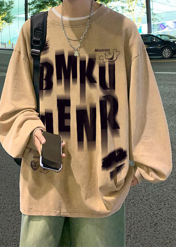 Casual Khaki O Neck Graphic Cotton Mens T Shirts Fall WJ011