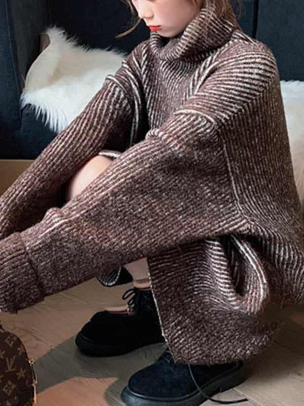 Design Loose Blue Contrast Color High-Neck Long Sleeve Sweater AN1054