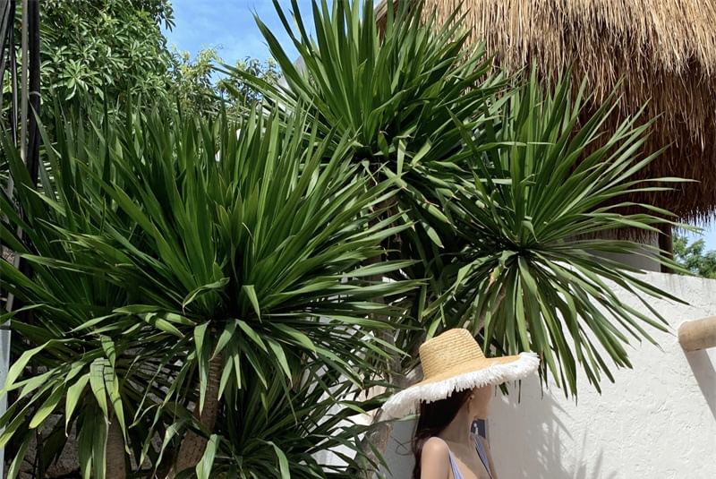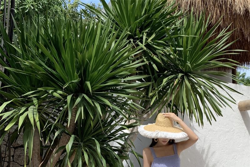 Dress Maxi Spaghetti Striped Square Ruffle Strap Neck Sun