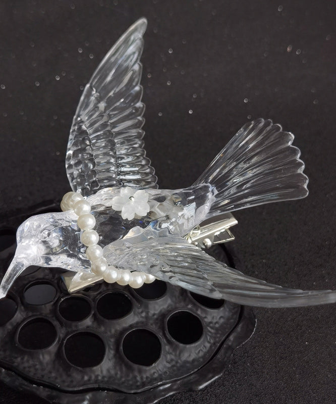 Elegant White Alloy Pearl Resin Magpie Tassel Hairpin QD035