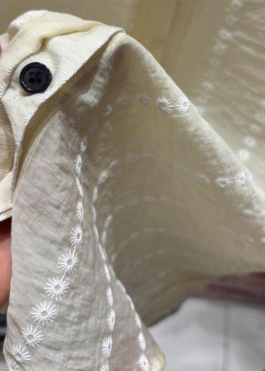 Elegant Apricot Embroidered Button Cotton Shirts Summer