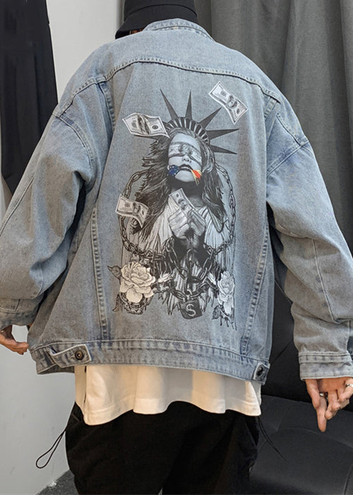French Navy Print Button Pockets Denim Men Coats Spring TC041
