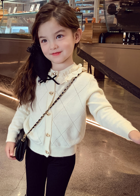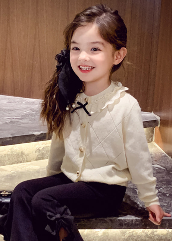 New Apricot Ruffled Patchwork Bow Cotton Knit Kids Cardigans Winter WL051