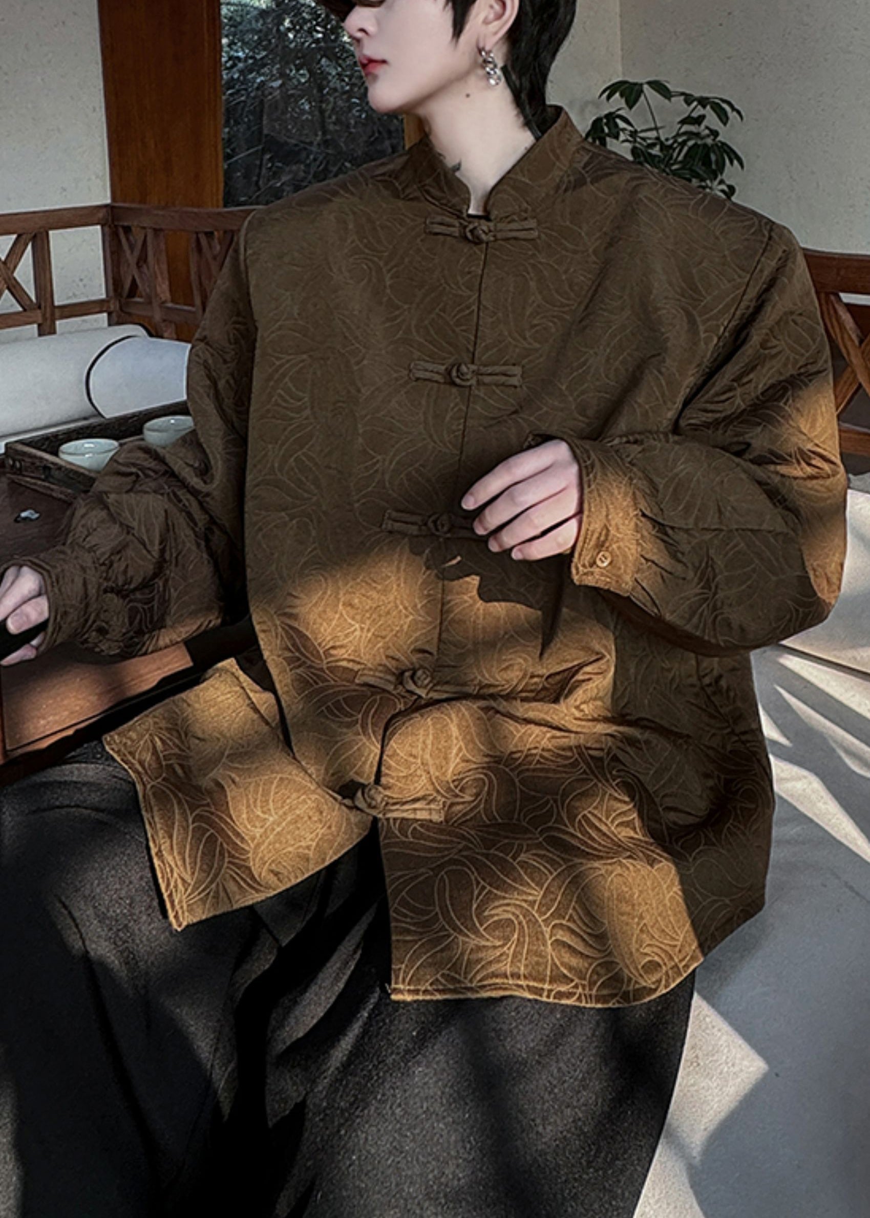 Introducing our latest addition, the premium New Coffee Stand Collar Button Cotton Shirts for fashion-forward gentlemen this fall. Elevate your wardrobe with this exquisite and elegant piece, crafted with the finest cotton and adorned with a crisp stand collar and luxurious buttons. Experience luxury and sophistication like never before with this must-have for the season.