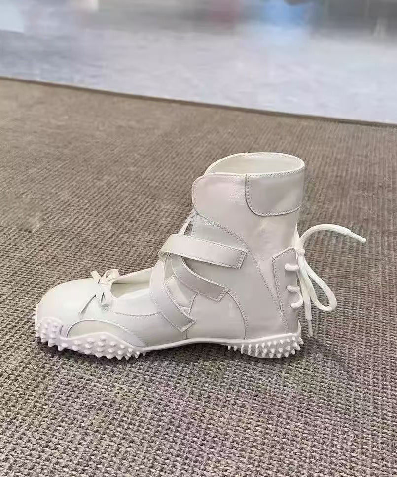 Fashion Bow Lace Up Splicing Flats Shoes Nude Faux Leather