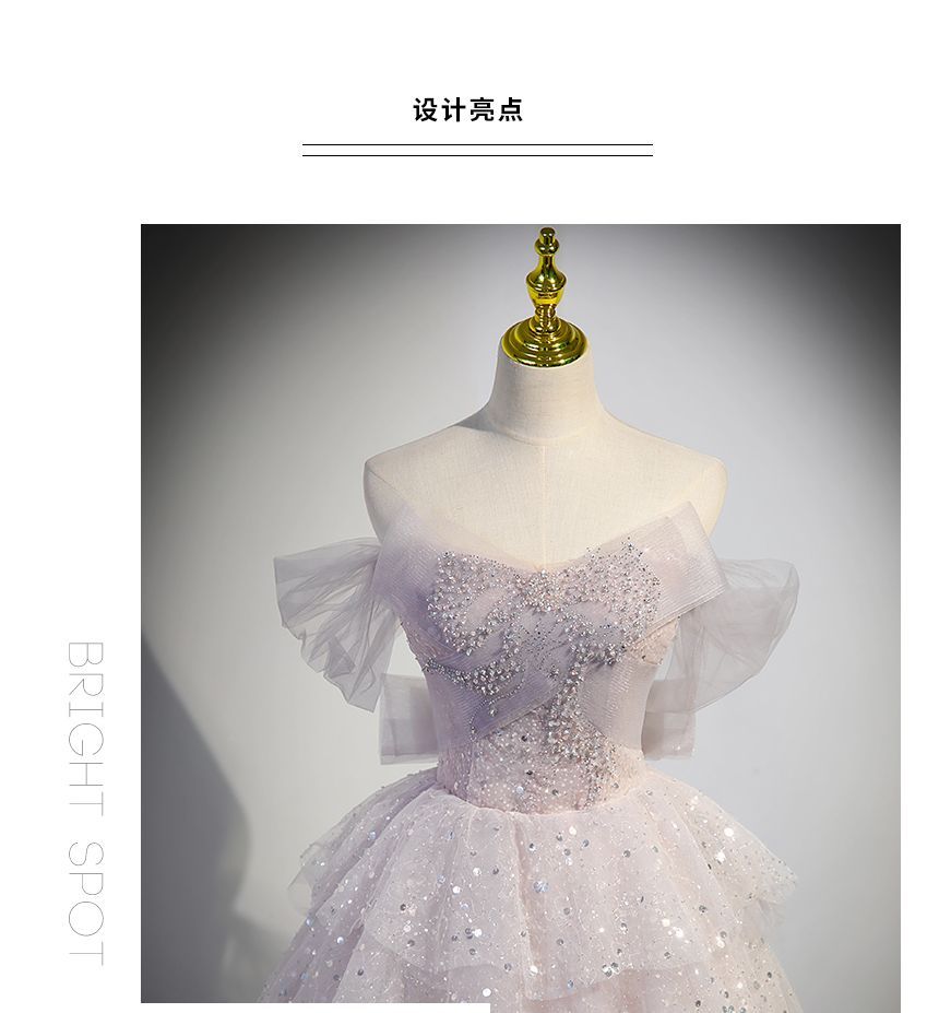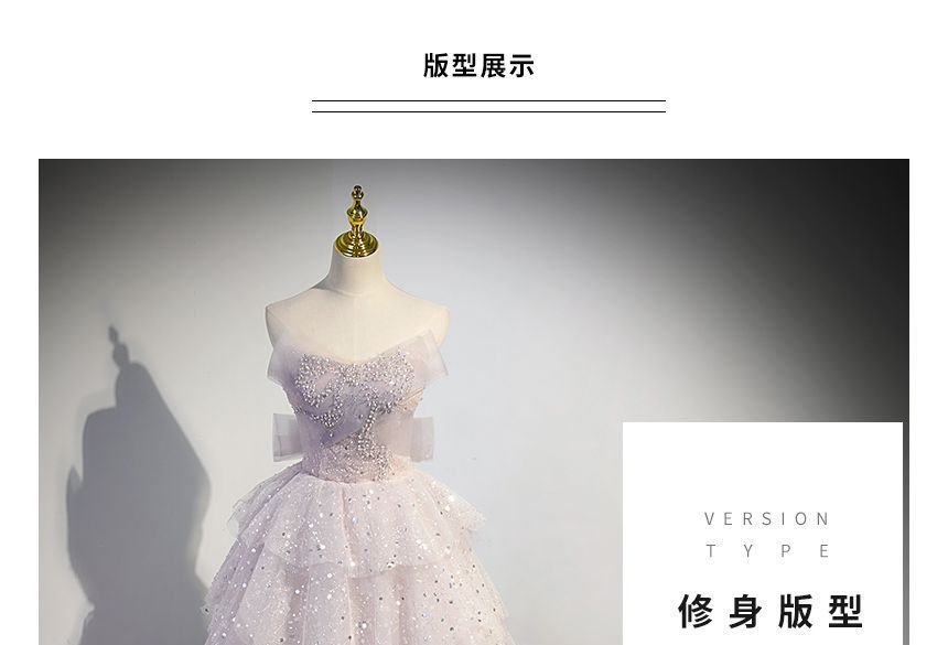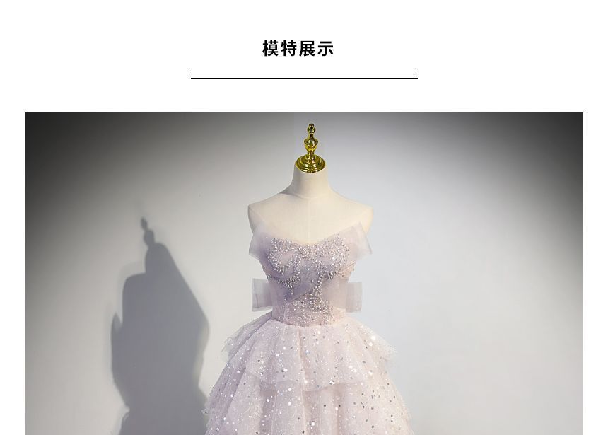Off-Shoulder Sequined A-Line Mesh Layered Evening Gown